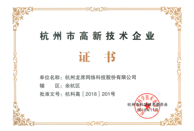公司先后被評(píng)為杭州市雛鷹企業(yè)、軟件企業(yè)、浙江省科技型中小企業(yè)、國(guó)家科技型中小企業(yè)、杭州市高新技術(shù)企業(yè)、國(guó)家高新技術(shù)企業(yè)、
